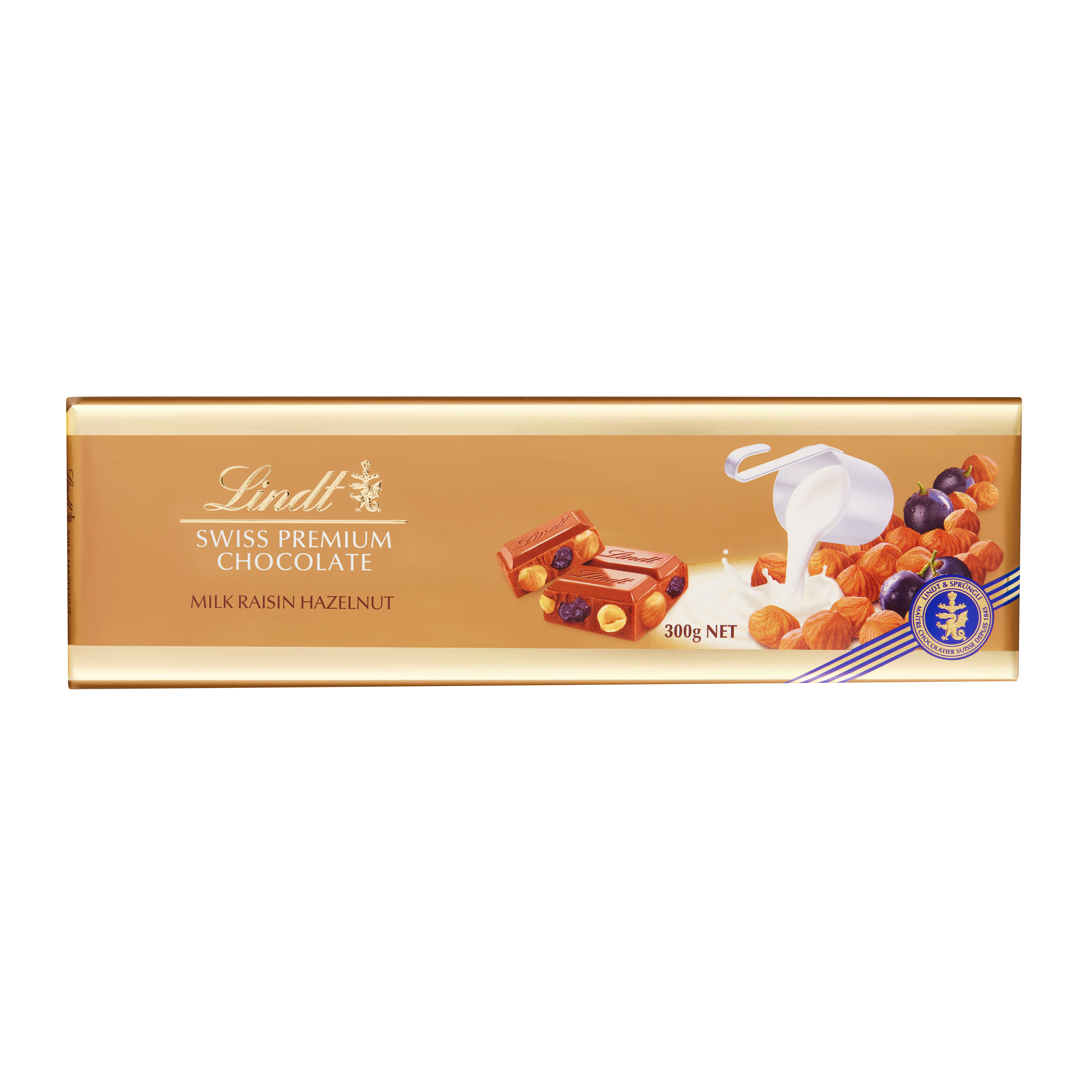 Discover the delicious combination of crunchy hazelnuts and almonds, and sweet, juicy raisins, in one irresistible giant fruit and nut chocolate bar. Since 1845, the Lindt Master Chocolatiers have combined their expertise with the highest quality ingredients from around the world to produce the finest chocolates. Delight in a sublime taste and texture experience as you peel back the glistening gold wrapping to reveal plump raisins, and gently roasted hazelnuts and almonds, enrobed in our smooth Swiss milk chocolate. Experience luxury with Lindt.